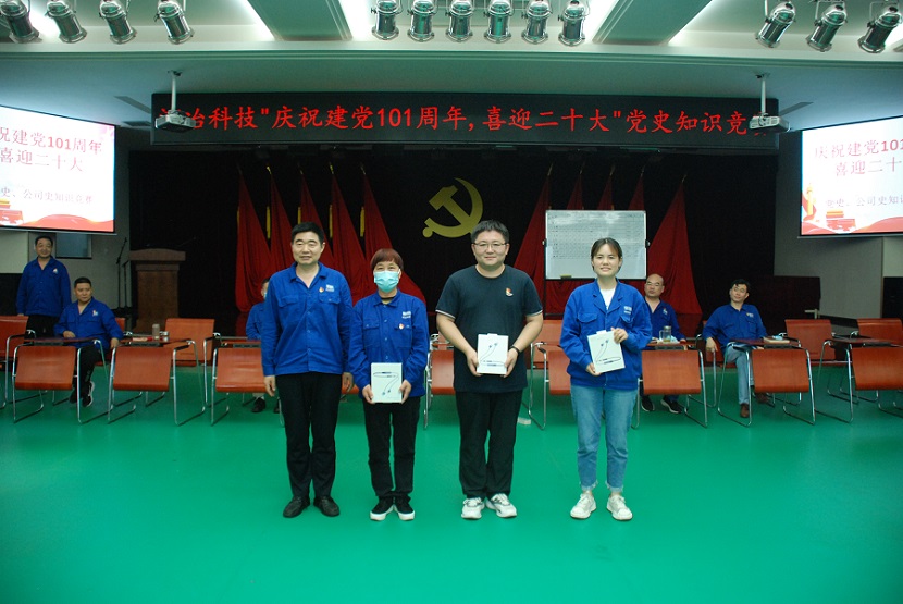 2022年7月1日,在建黨101周年的特殊日子里,公司黨群工作部組織的"慶祝建黨101周年、喜迎二十大”黨史新中國(guó)史、公司發(fā)展史知識(shí)競(jìng)賽在多功能廳隆重舉行。公司黨委副書記梁敬斌、黨委委員、副總經(jīng)理侯國(guó)棟、副總經(jīng)理陳彥錦應(yīng)邀出席比賽現(xiàn)場(chǎng)。黨群工作部部長(zhǎng)以及各黨支部書記擔(dān)任本次比賽的仲裁團(tuán),公司九支隊(duì)伍參加比賽,每支隊(duì)伍的選手都由兩名正式黨員和一名入黨積極分子組成。