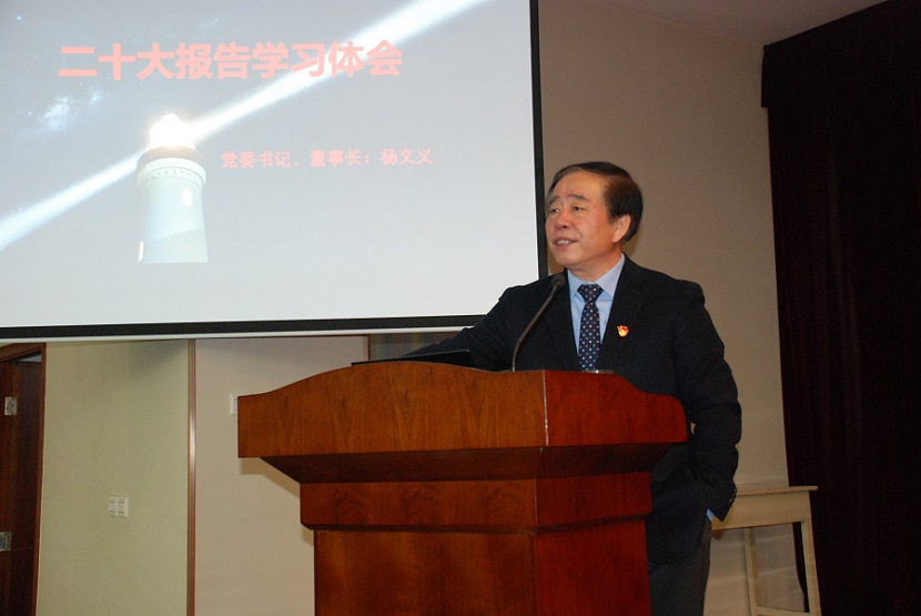 最后楊總結(jié)合自身二十大報(bào)告學(xué)習(xí)的體會(huì),給大家上了一堂黨課,他從關(guān)于五個(gè)牢牢把握、關(guān)于三個(gè)務(wù)必、關(guān)于高質(zhì)量發(fā)展等三個(gè)方面進(jìn)行了闡述和解讀,生動(dòng)精彩,很有指導(dǎo)意義,大家受益匪淺。
