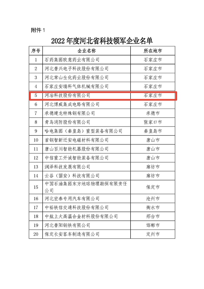 近日,河北省科技廳發(fā)布《關于公布2022年度認定河北省科技領軍企業(yè)和列入科技領軍企業(yè)培育庫企業(yè)的通知》,我公司經推薦、評審、公示,成功被認定為“河北省科技領軍企業(yè)”。